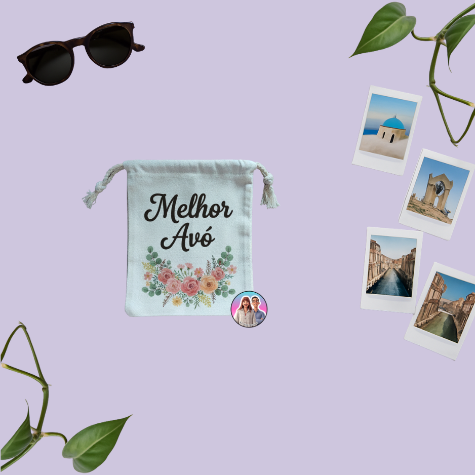 Perfeito para guardar acessórios, lembranças ou artigos de uso diário, com fecho em cordão e design exclusivo.