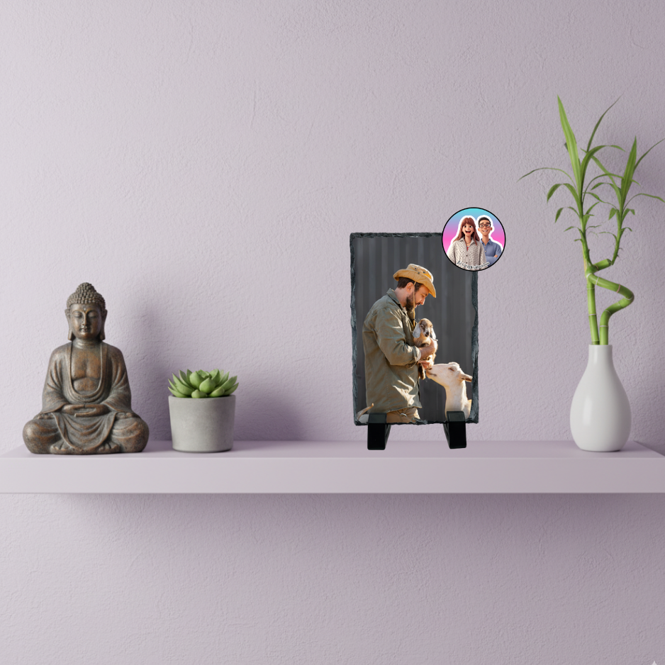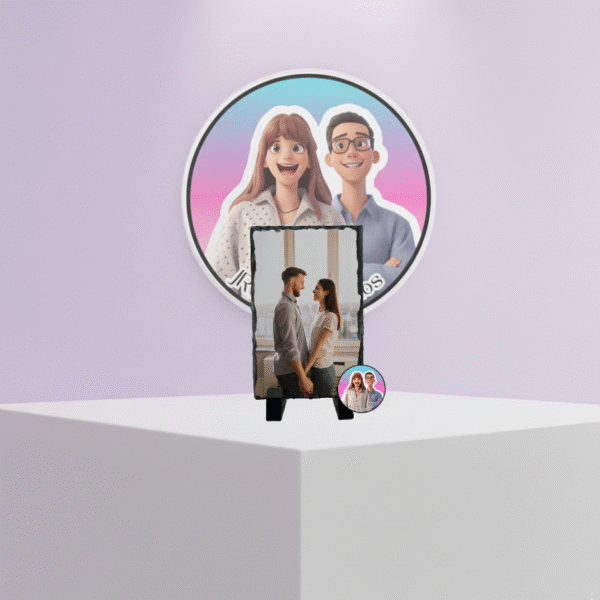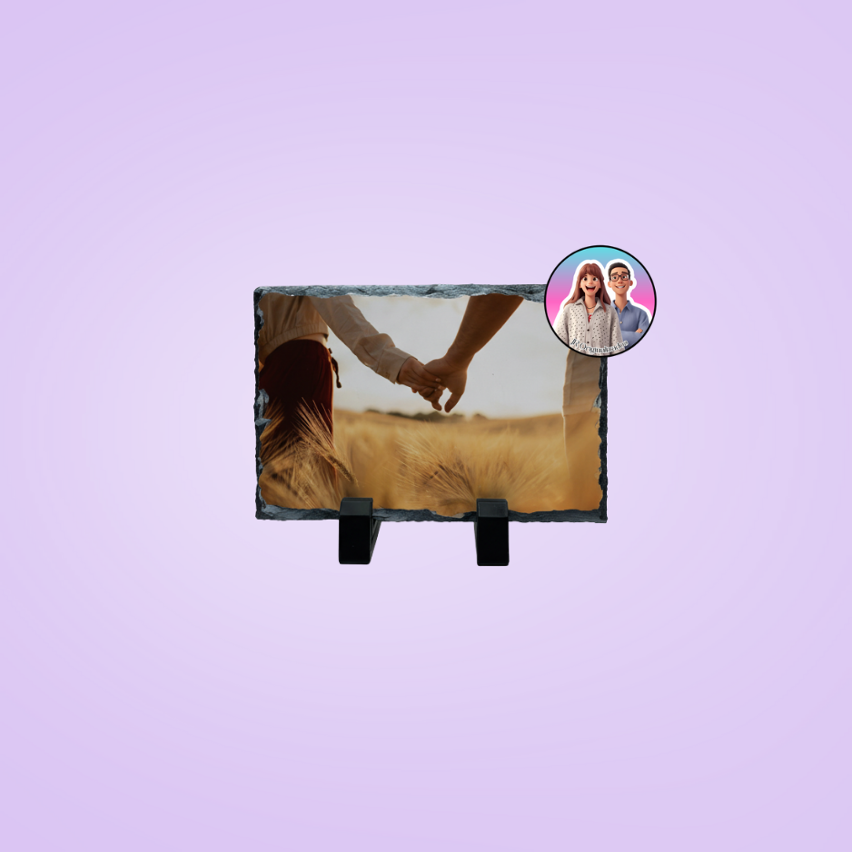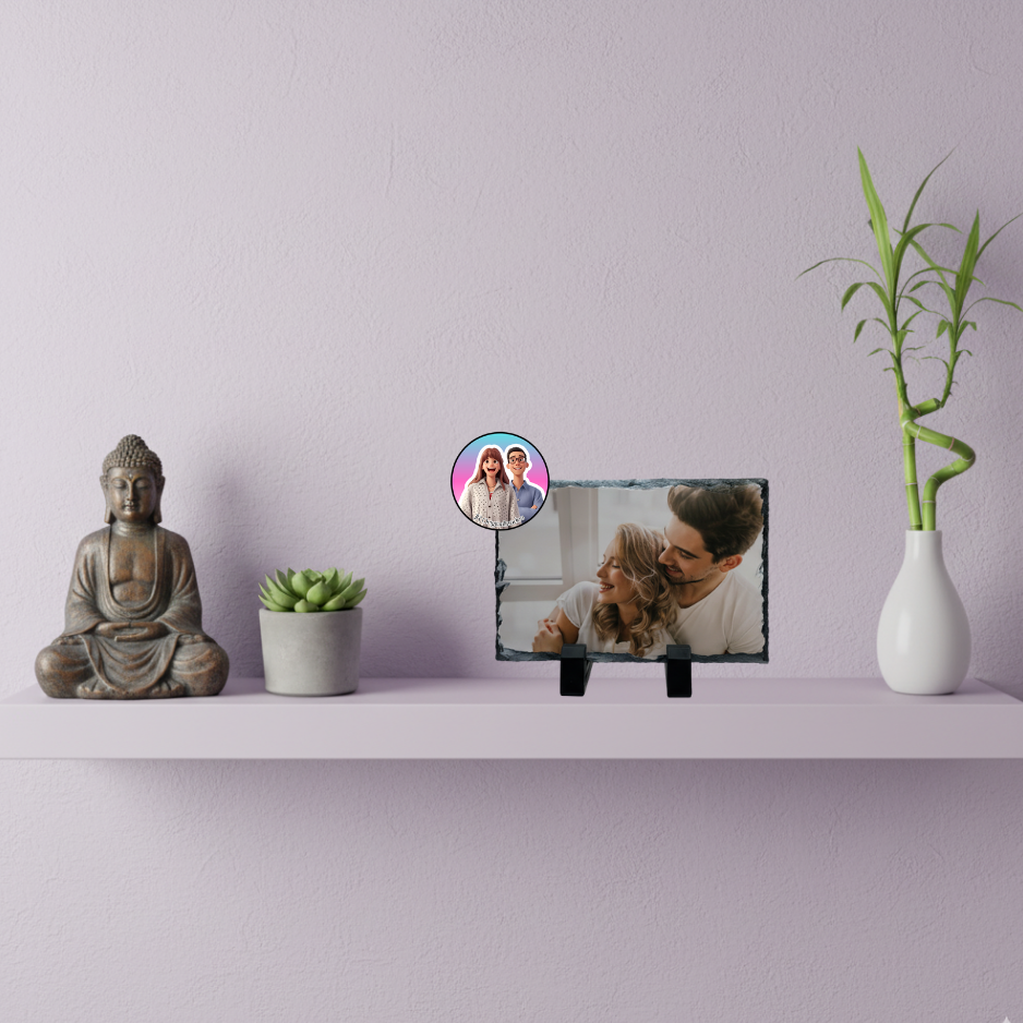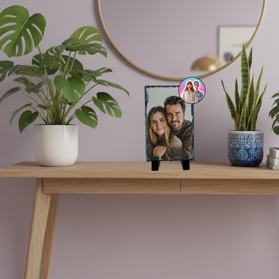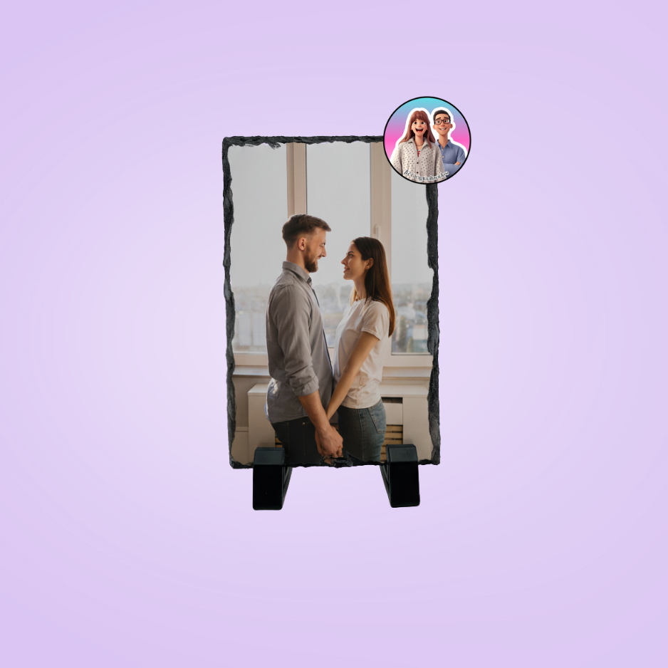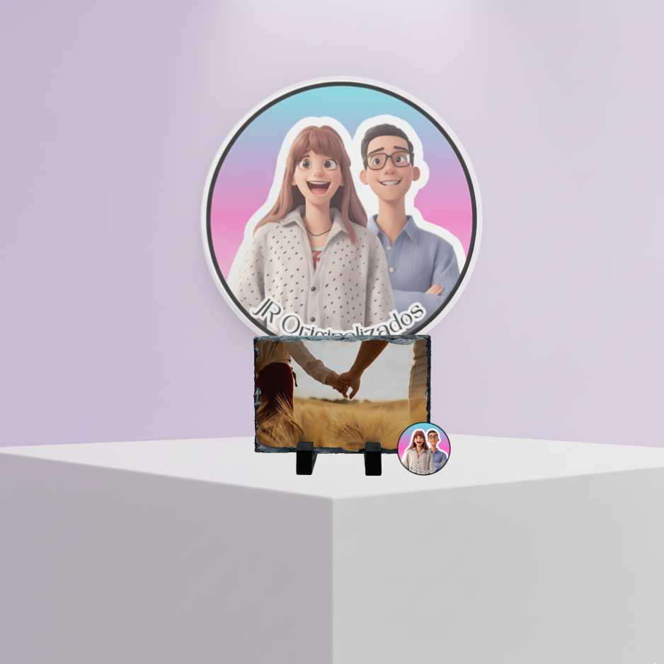 Pedra de xisto personalizada com foto, ideal para oferecer em aniversários, casamentos ou datas especiais.