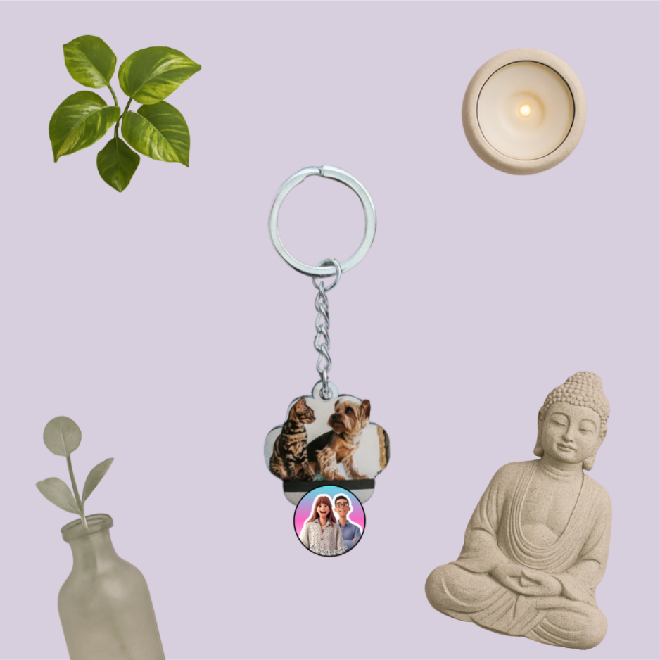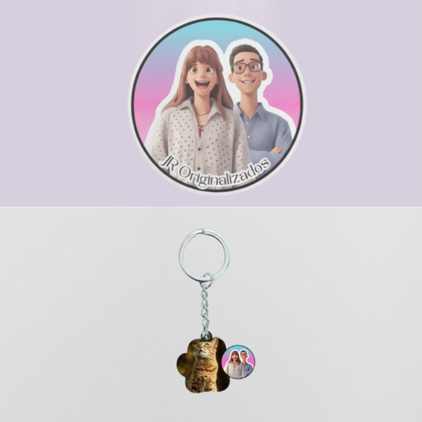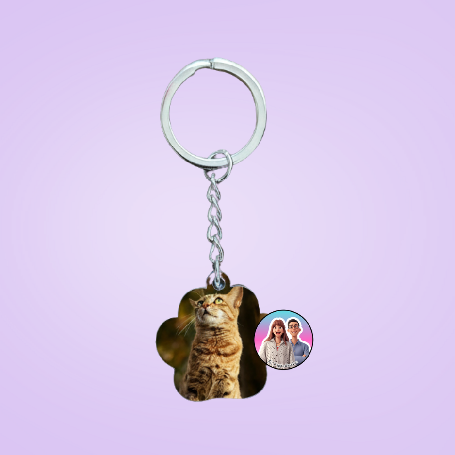 Personalizável com a foto do seu animal, este porta-chaves é perfeito para levar sempre consigo uma recordação especial do seu companheiro de quatro patas. Ideal como presente ou lembrança única para donos apaixonados.